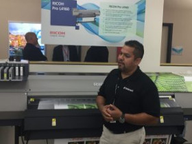 Ricoh’s Tim Bolton describes the new Pro VC40000 continuous-feed inkjet press, one of several inkjet presses on display.