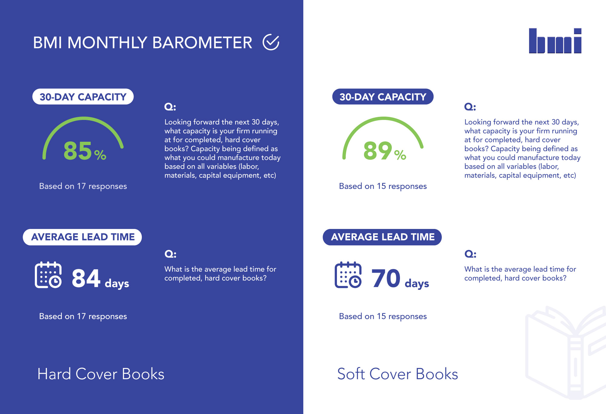 BMI Executive Director, Matt Baehr said, “Labor and paper are still the two biggest factors we are seeing in book manufacturing today. Both can be very difficult to come by and that is affecting a large majority of our industry. These survey results show how much lead times are being affected because of current conditions.”