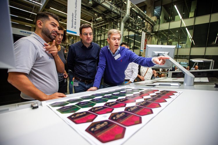 Labels give products their unique identity and boost the impulse to buy at the point of sale. The label market combines a share of some five percent of the worldwide print volume of around EUR 400 billion with great growth potential. This is why Heidelberger Druckmaschinen AG (Heidelberg) decided to present its extensive portfolio around label production at not one, but two events in September. Gallus, a subsidiary of Heidelberg, demonstrates all the possibilities around digital and conventional label printing as well as digital finishing in the narrow-web field at Labelexpo in Brussels (Gallus digital press folder). At the Label Day at the Wiesloch-Walldorf (Germany) site, visitors saw complete production workflows for wet-glue and in-mold labels (IML) on Speedmaster machines.