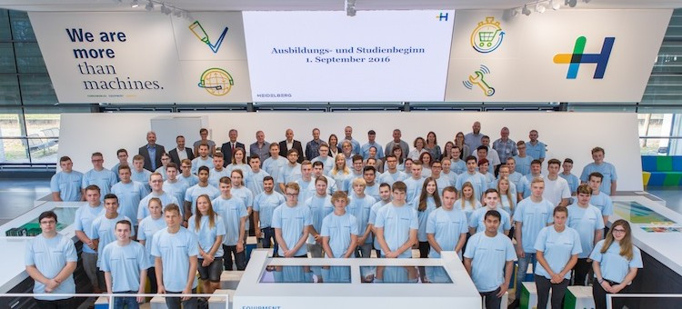 HEIDELBERG, Germany — September 2, 2016 — The overall recovery in the financial situation at Heidelberger Druckmaschinen AG (Heidelberg) is also reflected in recruitment numbers for the new training year. The start of the new training year on Sept. 1 sees a total of 90 young people launching their careers at the four German sites Wiesloch-Walldorf/Heidelberg, Brandenburg, Amstetten, and Ludwigsburg — 10 more than just a year ago.