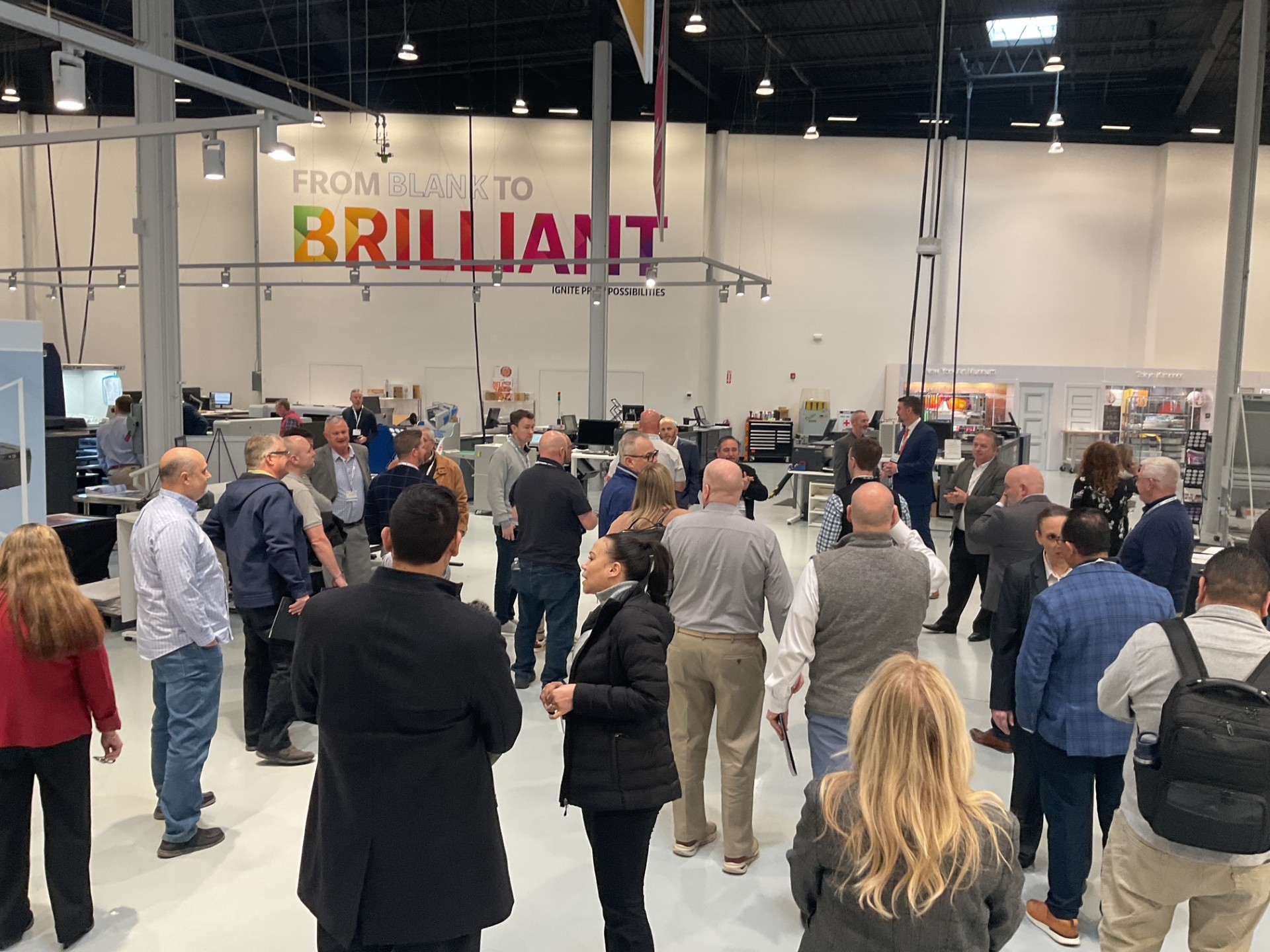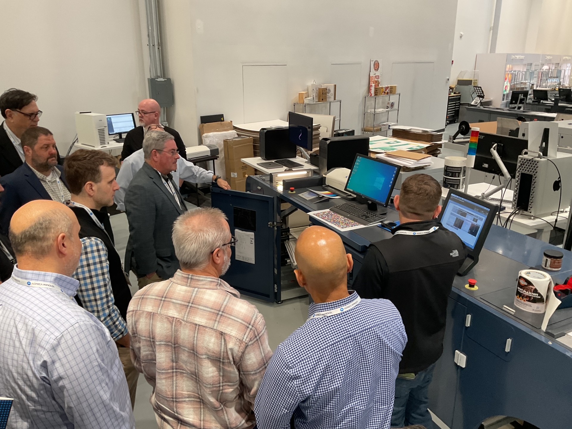 On Tuesday, Konica Minolta opened the doors of its Ramsey, New Jersey, Client Engagement Center (CEC) to a group of about 50 print service providers from across the country. They toured the 18,500-sq.-ft. showroom, which holds 90% of the company’s print and embellishment portfolio, and got in-depth demos from product managers.
