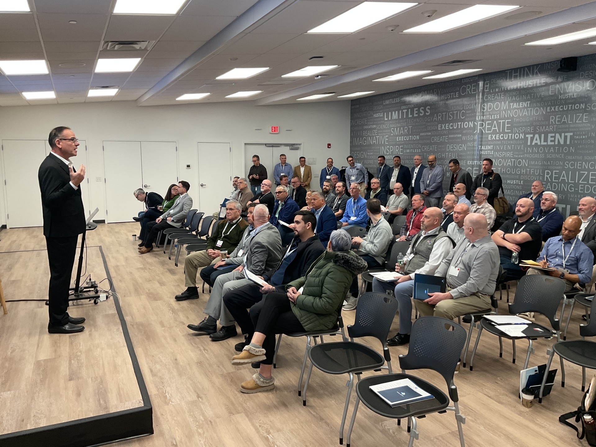 The day started with a welcome and industry analysis from Frank Mallozzi, president of Industrial Print at Konica Minolta, who noted that the company is doing very well in the B2 inkjet market, with 300 global installations. The newest iteration of its KM-1 press, the AccurioJet 30000 UV inkjet press, launched in April 2025, boasts a 94% uptime, he said, and continues to generate strong interest.