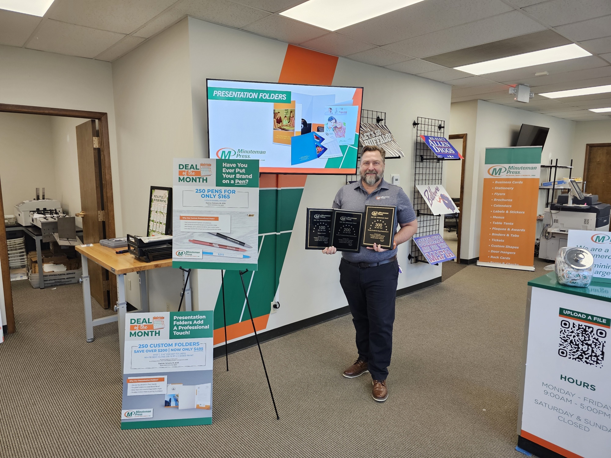Following an aggressive growth through acquisitions strategy, Minuteman Press franchise owner Wes Froebel has achieved President’s Club status. Wes first purchased Minuteman Press in Buffalo, NY in November of 2017, and has owned his second center in Amherst, NY since September of 2020. For the year ending 2025, Wes achieved over $1 million in gross sales at his Amherst location.