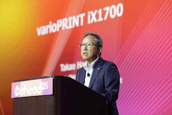 Following Kobayashi’s presentation, Takao Hada, advisory director and deputy chief executive, Digital Printing Business Operations, Canon Inc., took the stage to highlight some of Canon’s most recent technology, including the varioPRINT iX1700. He pointed out that the high-speed production inkjet press accommodates a diverse range of substrates and meets growing demands for more sustainable production.