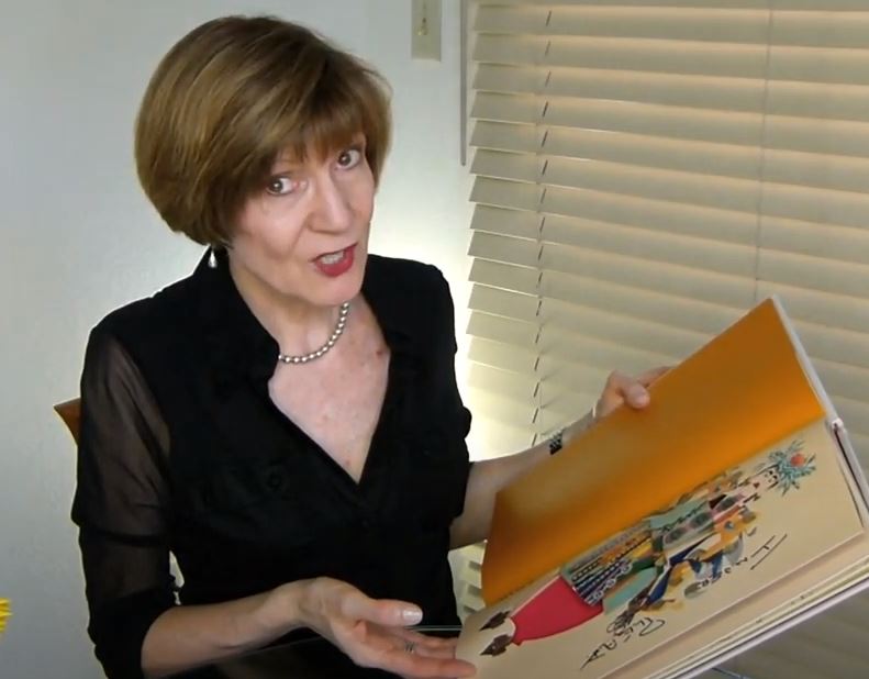 Other figure illustrations, however, are much more complex. That is because they are printed on a French fold that has been intricately diecut so as to allow a separately printed and finished sheet tucked between the two folded panels to peek through on the illustration side, completing the picture.