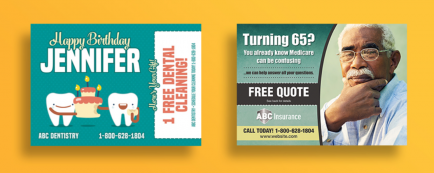 Both birthday mailers and Medicare mailers can be customized according to a business's specific ideal customer profile, and both include dynamic personalization to ensure each the design of each mailer is customized down to an individual level. This can include dynamic first names printed on the mailers, dynamic images, dynamic messaging and more.