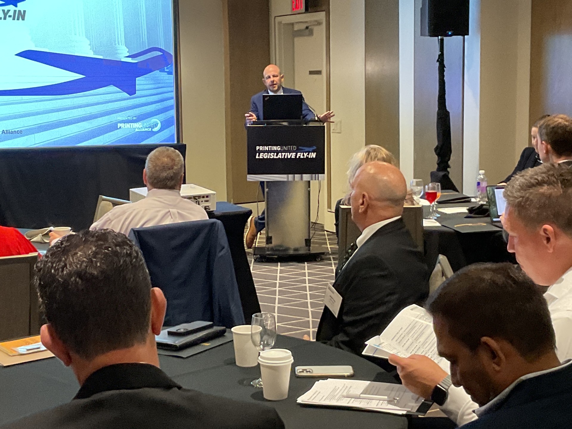 In a move designed to educate members of Congress on the most pressing issues affecting the printing industry, about 40 print industry leaders assembled in Washington, D.C., on May 15, 2025, for the PRINTING United Alliance Legislative Fly-In.