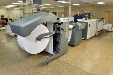 Operators can spend up to two to three hours per shift unboxing, unwrapping, staging, and loading cut sheet paper as compared to typically five minutes per shift with roll feed automation. With 60,000 sheets per roll, the Tecnau SheetFeeder VP 6000 delivers maximum productivity and reliability. “Our staff doesn’t have to fill up drawers any longer. We simply set up multiple jobs at one time and let the rolls run. Our labor costs have been reduced by one third,” said Mr. Rusticus.
