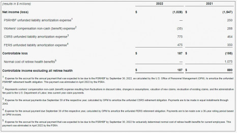 This news release references controllable income excluding all retiree health benefits expense which is not calculated and presented in accordance with GAAP. This non-GAAP measure is calculated as controllable income (loss) adjusted for the impact of the retiree health benefits expense associated with normal costs which were eliminated by the PSRA in April 2022.