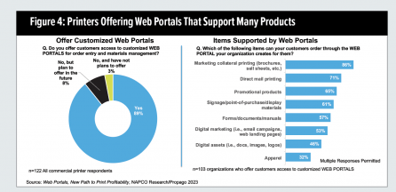 To uncover market trends and customer demands that are fueling development and use of customized Web portals, NAPCO Research conducted a study titled “Web Portals, New Path to Print Profitability,” sponsored by Propago. The research is based on the survey responses of more than 100 commercial printers that offer Web portals/storefronts.