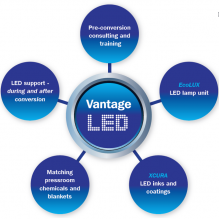 VANTAGE LED is a unique UV LED lamp retrofit conversion solution for sheetfed printers recently released by Flint Group.