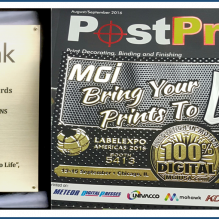 MGI received a “Gold Award” in the Gold Ink Awards for a unique cover ‘tip card’ affixed to the outside of an edition of PostPress.