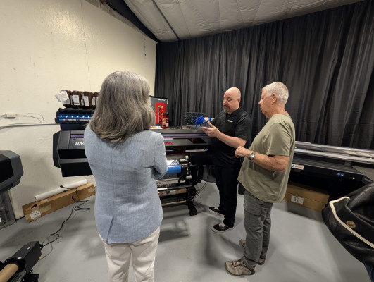 Alder Color Solutions hosted an open house event at their Portland, Oregon, facility on June 27, celebrating 100 years of business — and the people and technologies that helped them succeed. The event featured cocktails, raffles, lunch, a demo center, and booths displaying the technologies of some of the company's partners. Sponsors included Mutoh, Mimaki, Duplo, and Sun Supply. They also gave away a MutohC641SR PRO to one lucky attendee, after also showing off that and several other presses and technologies throughout the event.
