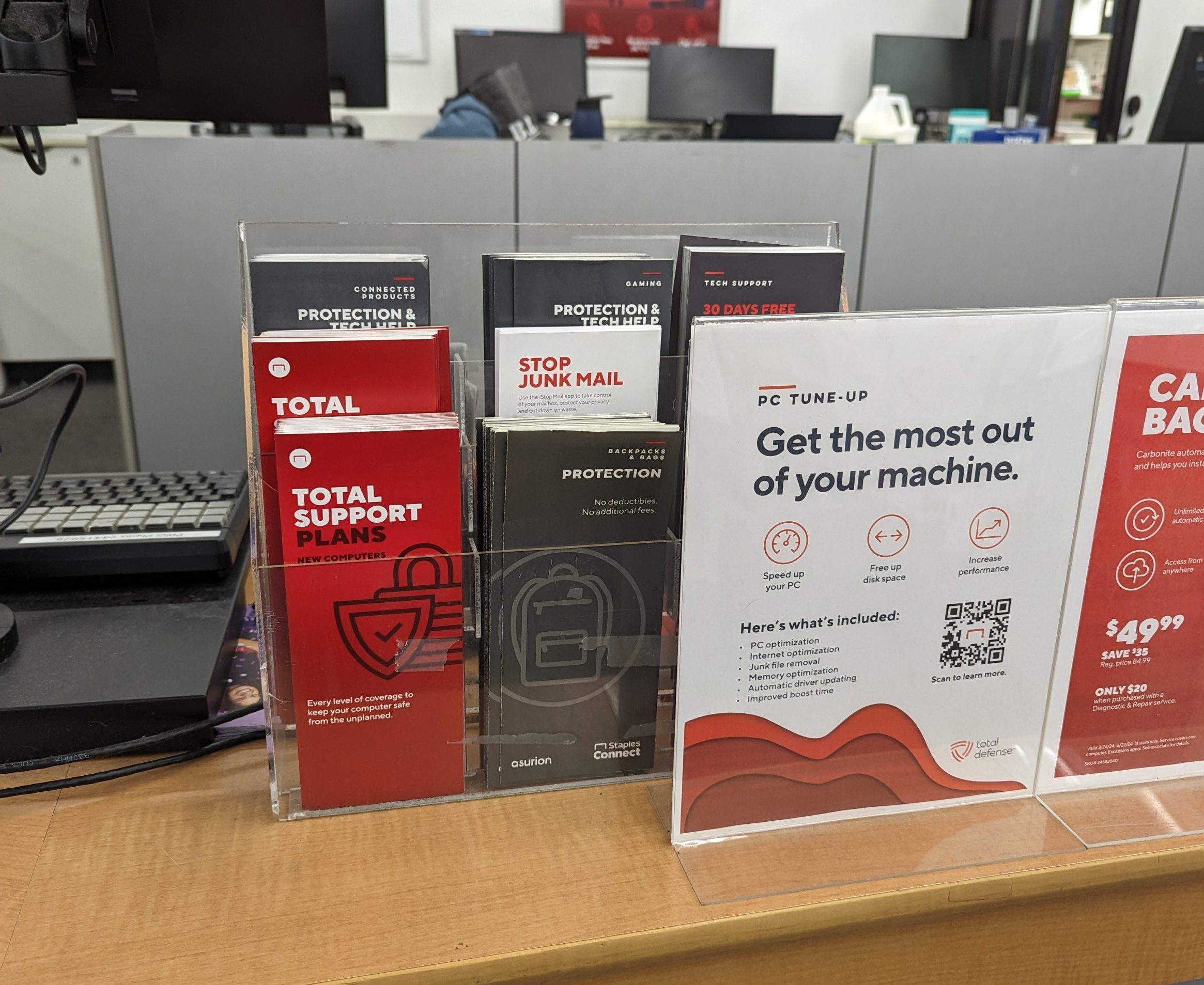 I went out the other day to get an oil and filter change done on my car and with a little extra time to kill, stopped at a Staples on the way to pick up a pack of paper for my office printer. After poking around a bit, I was headed to check out when a rack card on one of the service counters caught my attention.
